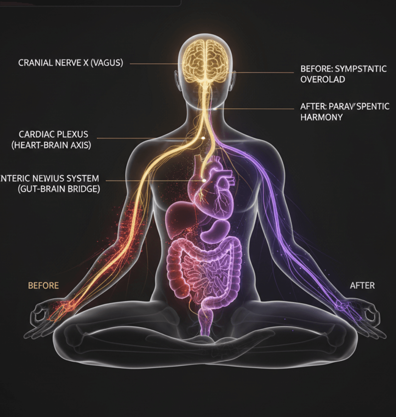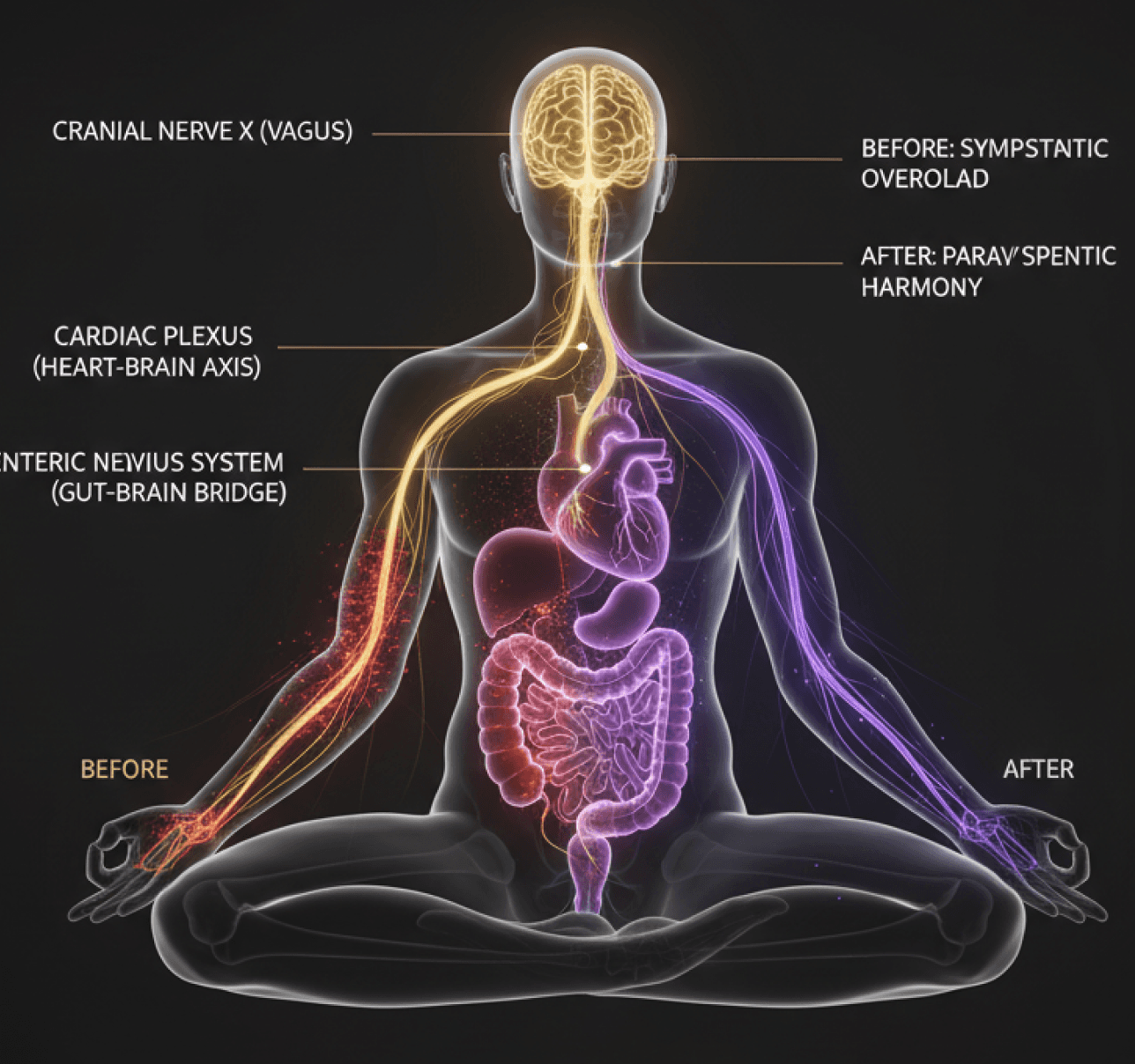 Vādma works by activating a precise polyvagal, neuro-somatic gateway in the body — where the body’s cardiovascular system, sympathetic response, and parasympathetic regulation converge.
